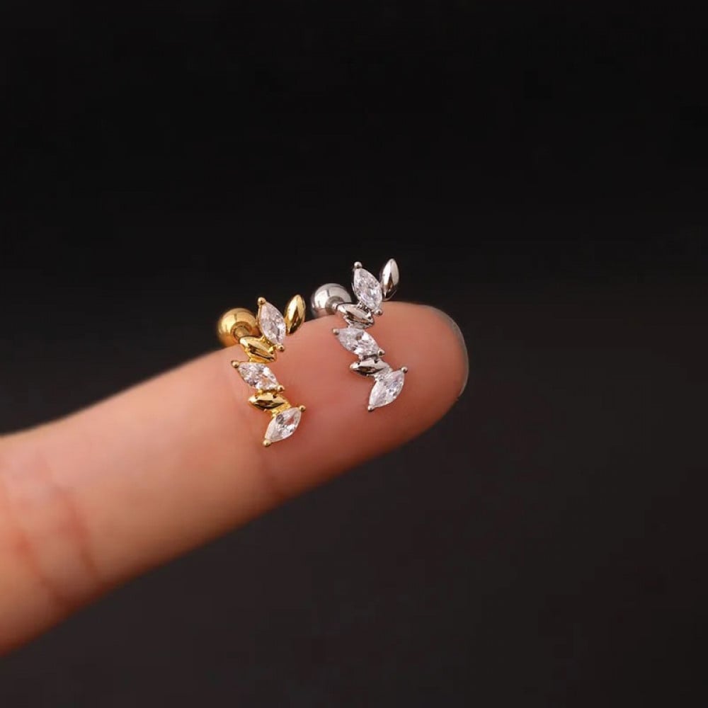 حلق ذهبي زركون ازرق ينلبس بطريقتين